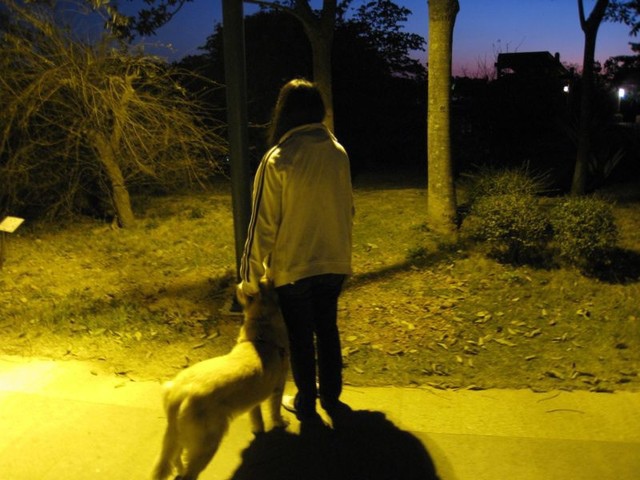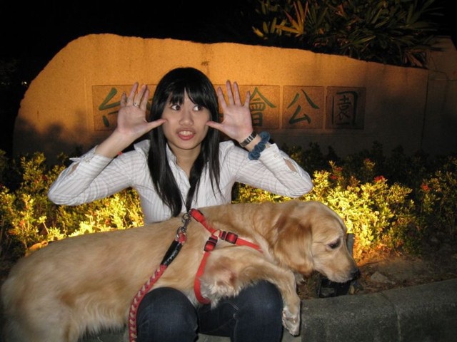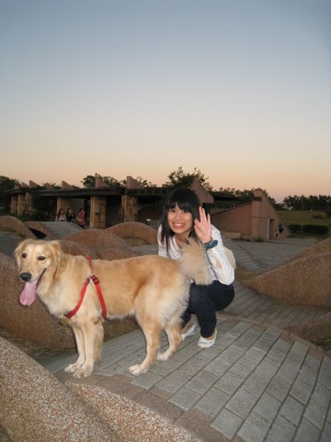 從大門出來還可以看夜景,跟狗狗去都會公園真的好玩耶,這位先生問是不是還因為有他才好玩