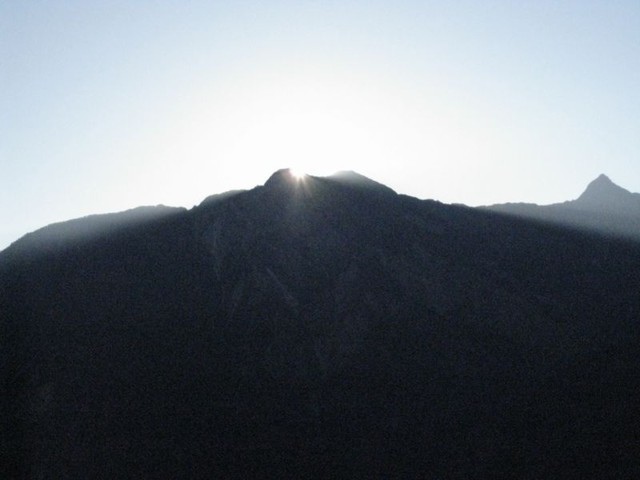 然後,太陽出來了,一出現就光芒四射、金光閃閃 (模式沒弄好,霧霧的,沿路不管拍什麼都用植物模式")