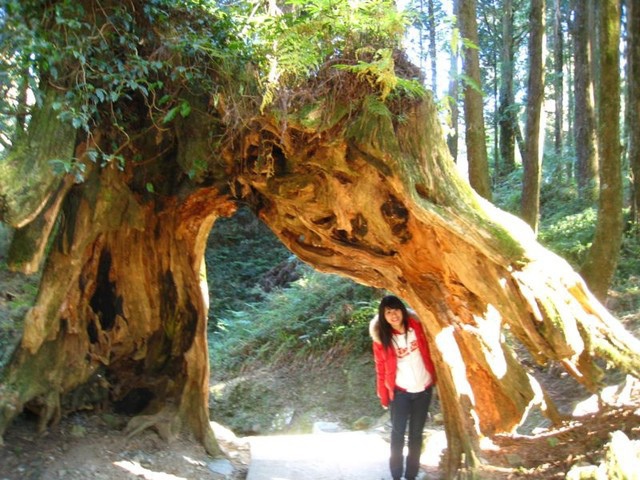 接下來是巨木區,這裡的神木一顆顆都九百、一千多年,古木參天(來到這除了想唱阿里山的姑娘,還想唱JAMES BLUNT的YOU ARE BEAUTIFUL,還有武則天-->古木(蛾眉)聳參天...)