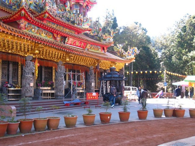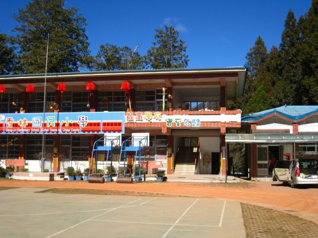 操場旁用盆栽一線之隔是受鎮宮,也不知是不是因為隔壁是廟,學校的屋頂也蓋得像廟,廟附近有攤販,賣的名產特別便宜喔,有烏龍茶跟山葵製品