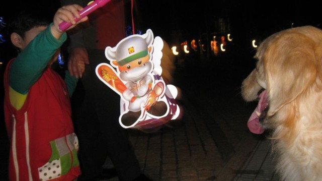 路邊弟弟想跟老林分享他的燈籠。老林坐在這有路人一直跟牠合拍還說牠是狗明星那我是星媽嗎。