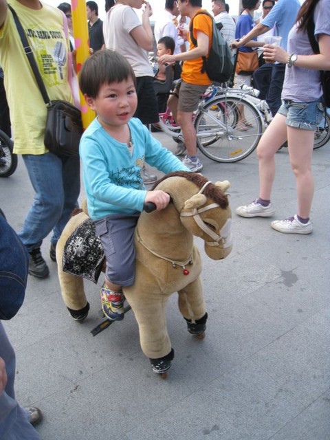 路人弟弟騎著很俏皮的馬,真的可以騎著它動
