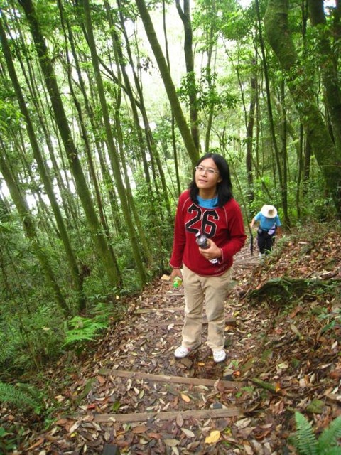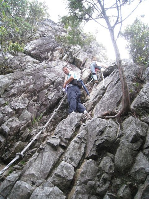 我們只有兩個人,怕危險,剛好在入口處遇到一對夫妻,就結伴一起走,壯壯我低膽。他們是開朗的夫妻,常爬山,跟我們解說了許多登山該注意的事。開始爬囉。