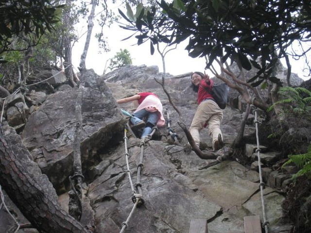 一段時間後,來到了令人驚驚的山,沒錯!繩索中間那條的窄窄的路就是讓人走的