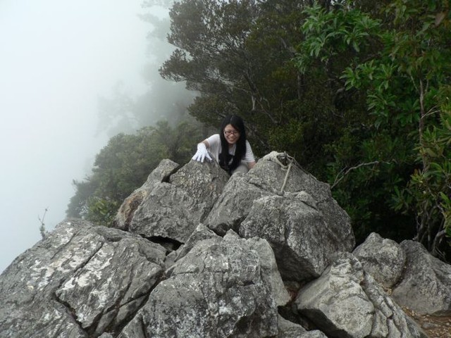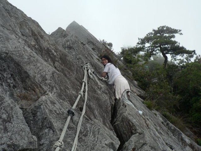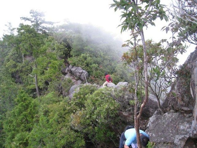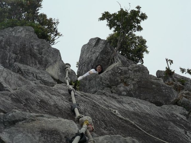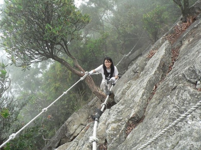 鹹蛋走前面時沒發現有條路比較緩,所以走到這麼驚悚的地方,剛好被我拍到。沒有繩子可扶,用ㄌㄨ的過去,算她厲害,讚啦>"<