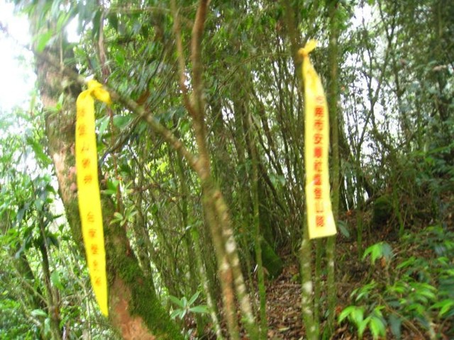 好小的路,沒有登山隊的緞帶根本不會注意到,原來路上這些緞帶是指引到一些小路的路口