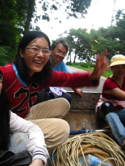 然後遇到一輛發財車好心載我們回停車的地方,大家都很開心,哈,風好涼,哈哈哈