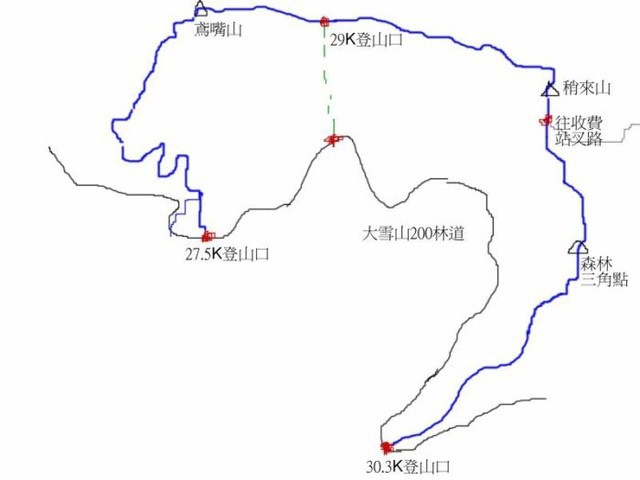 網路上抓的地圖,剛好藍色的就是我們的路線,從27k走到30k,有夠遠的啦,走了6個多小時,沿路跌了好幾次,走到都搖搖晃晃了,不過還是完成了,酷兒!