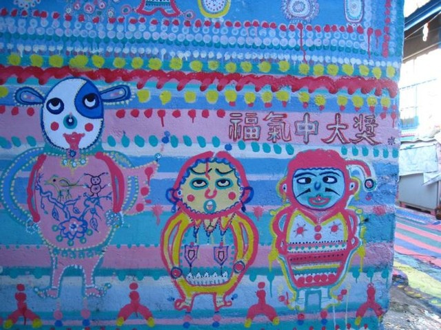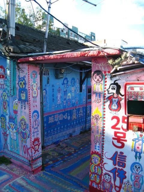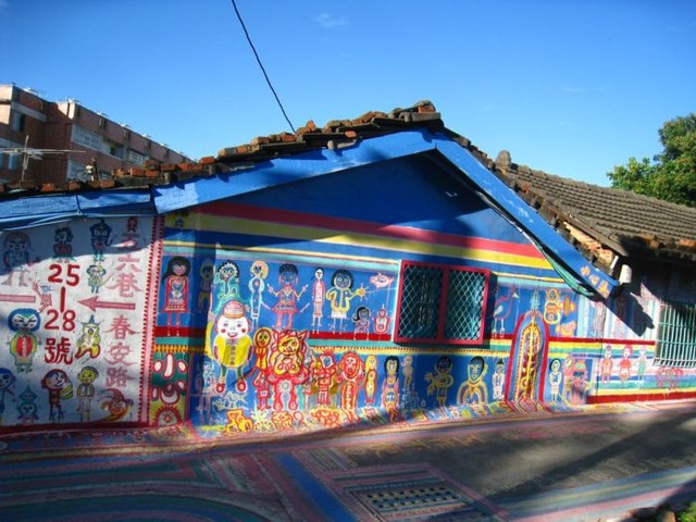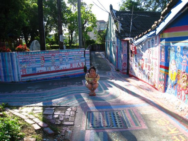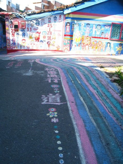 彩虹眷村是由一個榮民伯伯把他住的眷村通通塗上彩虹的顏色還有各種童趣的圖案,小巷、牆上、街道都是