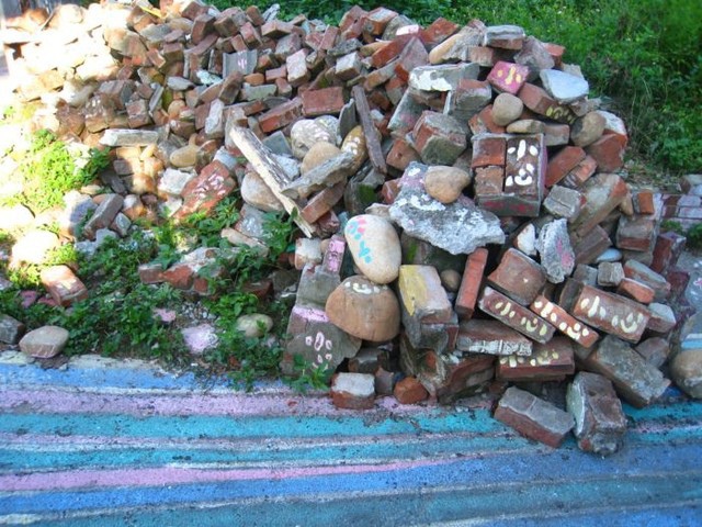 還有"小心磚塊堆"