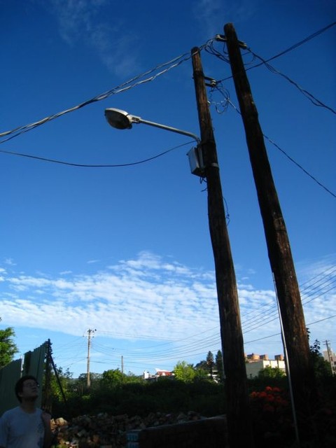 這裡的電線杆是木頭的