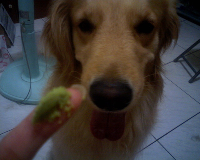 <!-- Origin Article URL: http://www.wretch.cc/blog/MiMiLins/20951816 --> 林小姐什麼都想吃<br /> 今天請你吃新東西<br /> 請笑納<br /> <br /> 蹡蹡哇沙比大人出場<br /> <img src="http://pic.pimg.tw/linmeowmeow/1387788085-3415908338.jpg"><br /> <br /> ㄎㄎ<br /> <img src="http://pic.pimg.tw/linmeowmeow/1387788086-2090540263.jpg"><br /> <br /> 狗狗吃哇沙比跟人類的表情很像嘛<br /> <img src="http://pic.pimg.tw/linmeowmeow/1387788086-1226235937.jpg"><br /> <br /> 整包快沒了<br /> <img src="http://pic.pimg.tw/linmeowmeow/1387788087-3852470697.jpg"><br /> <br /> <br /> 我承認我是怪阿母<br /> 呵呵不過還是很愛妳的<br /> 麻麻的老林啵