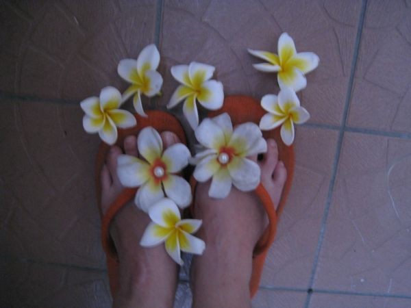 花花跟我的拖鞋融合了,真花、假花、都是雞蛋花